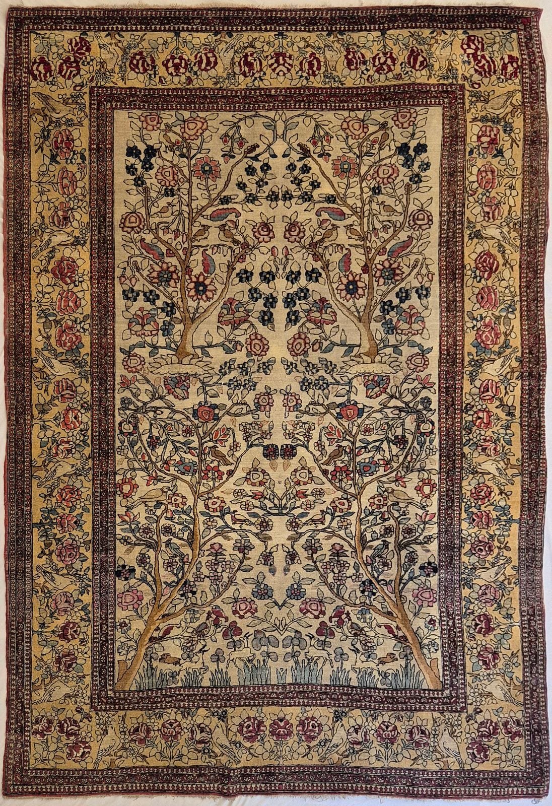Kashmir region has been producing rugs for about four hundred years probably due to the influence of the the first Muslim ruler of Kashmir, Shah Mir in 1349 and the Mughals, who ruled from 1526 until 1751. However, the commercial carpet industry really began to developed in the late 19th century. The finest silk rugs produced in India are found in Srinagar, Kashmir. Most designs have adopted patterns and designs introduced from Persia. Kashmir silk rugs mainly use curvilinear floral patterns employing the Shah Abbas motifs either with a central medallion or an all-over pattern, employing a field filled with crowded flowers, palmettes, and vines. Kashmir rugs are renowned to have bright, jewel-like color tones such as sapphire blue, ruby red, emerald green, aquamarine, amethyst, and ivory. Rugs from Kashmir traditionally employ oriental, floral designs that typically utilize motifs such as the boteh motifs, Central medallion, Prayer rug pattern, tree-of-life, panel Garden designs which are typically found in the more expensive Qom rugs. Kashmir rugs are made in a range of sizes and qualities. The usual quality found is what is referred to as a 16/16 (16 knots by 16 knots) per square inch or an 18/18(18 knots by 18 knots)per square inch. In metric this would be 360.000knots/m2 and 500.00knots/m2 respectively. These qualities usually are not so durable and may have a mixture of mercerized cotton(‘art silk’) and natural silk in the pile which considerably reduces the durability and price of the rug. The warp and weft of 16/16 and 18/18 rugs are usually cotton. At Bizsan we recommend the higher quality 24/24 (24 knots by 24 knots) or 26/26(26 knots by 26 knots)per square inch(approximately 900.000-1000.000knots/m2) because genuine pure unmixed silk is used for the pile and the warp making the rug more durable and valuable in the long run. These qualities begin to be comparable to the Iranian Qom rugs but are much lower in price than there counterpart. In the last few years Kashmir rugs are becoming the preferred silk rug due to the limited numbers of silk rugs produced in Qom, Iran and the much higher prices Qom’s rug are demanding on the market.
