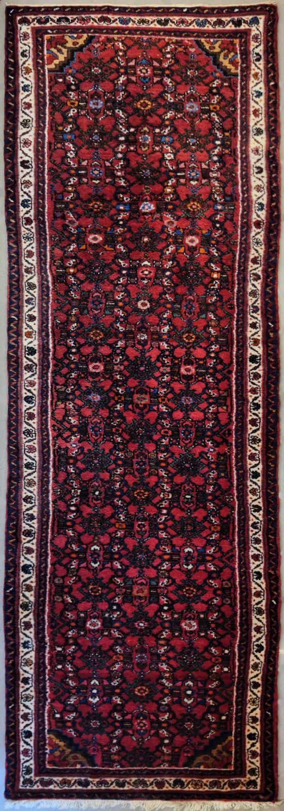 Hamadan, one of the oldest settlements in the world, originally known as Ecbatana, being the capital of the Median kingdom in the 6th century B.C. The tombs of Esther and Mordecai are located in Hamadan. Both geometric and curvilinear designs are produced in this region. Medallion design, boteh’s and herati patterns are used extensively. The weave is usually coarse to medium but some small amounts are produced in high quality. Though usually coarsely woven, these rugs are respected for their durability because of the good-quality wool used in the pile. The majority of hamadans are woven in small sizes. The larger sizes are usually more expensive due to their scarcity.