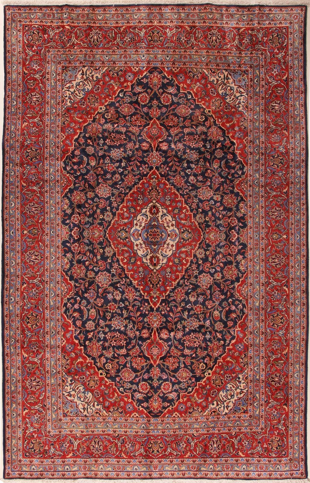 The City of Kashan is approximately 300km south of Tehran. For hundred of years this town has been renowned for its handmade carpet weaving industry. The carpet quality varies according to the workshop and material quality but typically Kashans are renowned for their durability and excellent weave execution. The wool quality is also typically one of the best utilized in Iran. The most common design of Kashan rugs is a floral profusion of vines, tendrils and arabesques utilized throughout the field of the carpet. There are also tree of life designs, vase motifs, boteh motifs and and even pictorial rugs are also woven in Kashan. The traditional colors of Kashan rugs are dark blue and red or dark and light blue with beige is typically utilized. Kashan rugs can be found in all sizes from small mats to large hall-size pieces. The most famous Kashans are known as Motashem Kashans; which were woven in the last part of the 19th century. These rare specimens have excellent quality wool and are finely woven with beautiful vegetable dyes. They have often been put on auction at Sotheby’s and Christie’s because they are highly sought after by collectors. They often reach quite high prices due to there rarity and beauty!