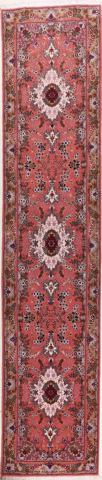 Tabriz (Mahi design): The weavers of these master workshops are the fastest and most skilled in Iran. Tabriz has one of the world’s finest wool rugs available in the market. The wool is excellent, Merino wool being the preferred quality utilized for Bizsan’s collection. Although there is a range of quality and variety of Tabriz mahi’s woven in and around Tabriz, the most common type of is 350.000knot-500.000knot/m2. This is denoted among rug merchants as Tabriz 40 radj or 50 radj. A radj is a measure equal to the length of a Persian cigarette, approximately 7 centimetres. Therefore a 50 radj rug is approximately fifty knots in 7 centimetres. The 60-80 radj Tabriz rugs are quite rare and prices reflect the number of these masterpieces woven in Tabriz. Silk is also utilized in finer pieces to accentuate details in the rug design. The Mahi design is composed of small intricate herati motifs repeated throughout the field of the carpet. These rugs are used either in modern or traditional rooms giving that special elegance and beauty to the space. The Tabriz Mahi gets its inspiration from Haji Jalili tabrizes woven around 1875. Tabriz (Floral Design): The weavers of these master workshops are the fastest and most skilled in Iran. Tabriz has one of the world’s finest wool rugs available in the market. Although there is a range of quality and variety of rugs woven in and around Tabriz, the most common type of Tabriz is 350.000knot-500.000knot/m2. This is denoted in Tabriz as 40-50 radj. A radj is a measure equal to the length of a Persian cigarette, approximately 7 centimeters. Therefore a 50 radj rug is approximately fifty knots in 7 centimetres, which is approximately 500.000knots/m2. The 60-80 radj is quite rare and prices reflect the number of these masterpieces woven in Tabriz. The wool utilized in most Tabriz master workshops is excellent quality, merino(kork wool) being the preferred quality utilized for Bizsan’s collection. The most common quality ranges from 500 000-600 000 knot although there are rare pieces that are 60-80 radj(750.000-1.300.000knot6m2), as a result the prices also reflect the number of these masterpieces woven in Tabriz. Silk is also utilized to accentuate details in the rug floral motifs. The floral patterns vary, either spread throughout the field of the rug with no central medallion or incorporated with a central medallion. The wide variety of pastel color combination’s used in these floral motifs are truly particular to the master workshops of Tabriz and no other workshop throughout the world has been able to replicate Tabriz designs or color dynamics sometimes incorporating 50-70 colors harmoniously. The number of rugs produced in Tabriz have become limited resulting in higher qualities and limited numbers woven. These rugs are quite durable due to there construction, wool quality and craftsmanship. Most employ synthetic dyes however a few rare pieces with Heriz designs can be found utilizing vegetable dyes. The most famous antique and sought after Tabrizs rugs are the Hadji Jalili Tabrizes that were produced by this famous workshop and workshops that were licensed by this family. They were produced around the later part of the 19th century(1875). They are known for their unique designs and craftsmanship which crowned this period of Tabriz artistry!